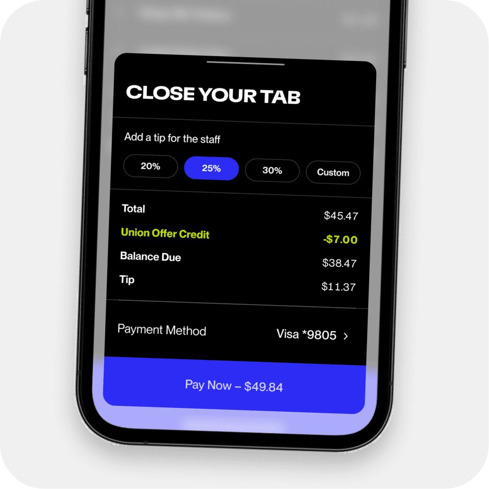 - Guests can close their tab, tip at their convenience, and leave as soon as they are ready.